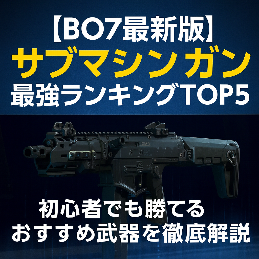 Call of Duty BO7(Black Ops 7)のサブマシンガン(SMG)は、機動力・近距離火力・立ち回り性能が勝敗を大きく左右する最重要武器カテゴリです。本記事では、現環境メタを踏まえて「本当に強いおすすめSMGランキングTOP5」を徹底解説します。初心者でも扱いやすい武器から上級者向けの高火力モデルまで、使い分けポイントも分かりやすくまとめています。