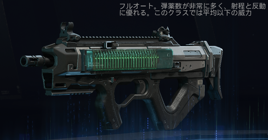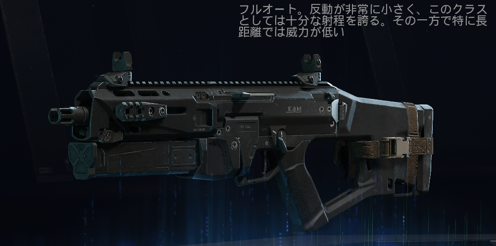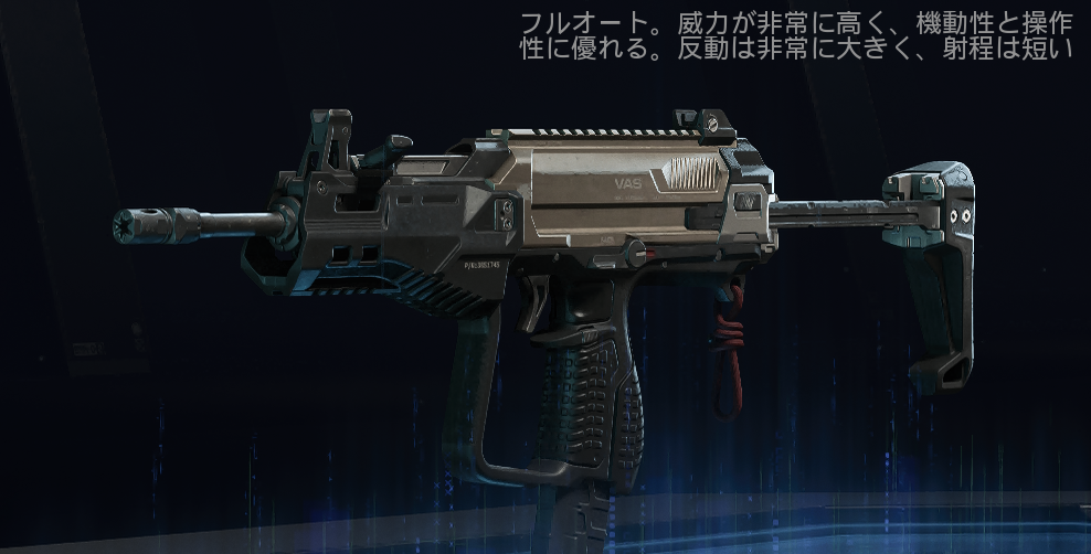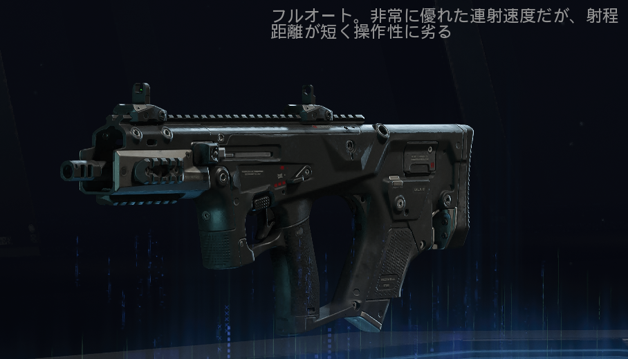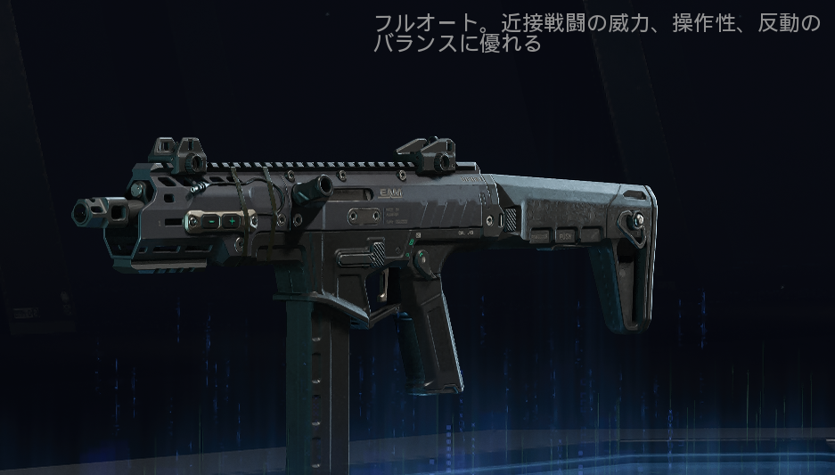 近距離の撃ち合いに特化した最強クラスのSMG。連射力が高く、インファイトでの対応力が段違い。